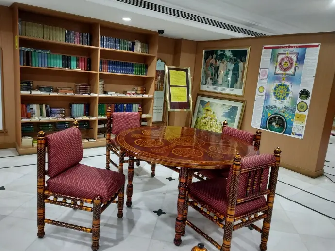 The ‘Heaven on Earth’ complex houses a spacious library which not only has an extensive collection of spiritual books but also a multi media section. One can watch ISKCON’s many international videos and relish hundreds of lectures, kirtans and bhajans.