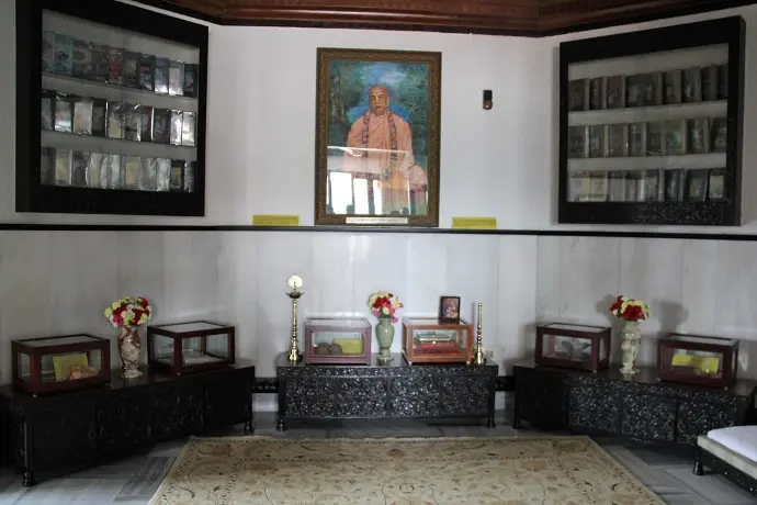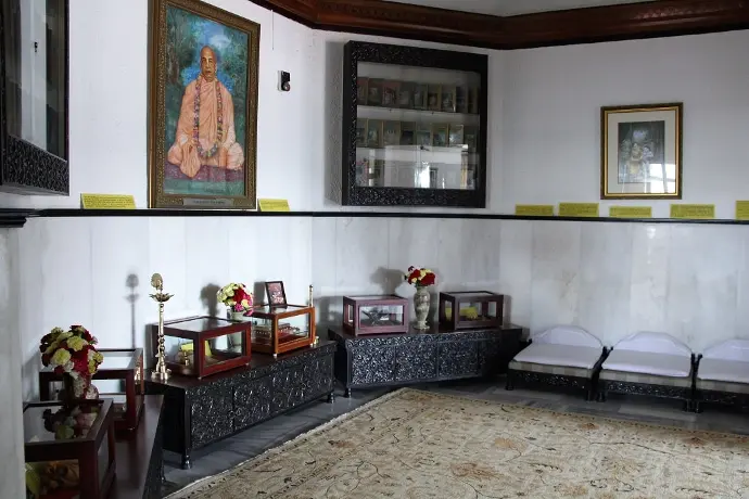 These are the living quarters of A.C. Bhaktivedanta Swami Prabhupada, Founder-Acharya of ISKCON. They are housed in the fifth floor of the west tower of ISKCON guesthouse.